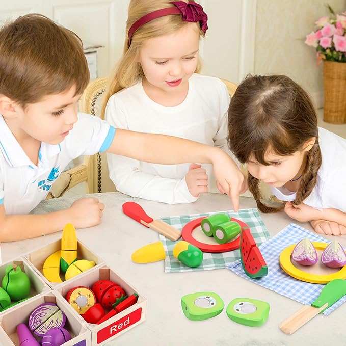 - Perfect Gift for Preschoolers: Ideal for children ages 3-5, this wooden playset combines food cutting, sorting, and role-playing. It encourages creativity and social skills, making it a great gift for birthdays or holidays