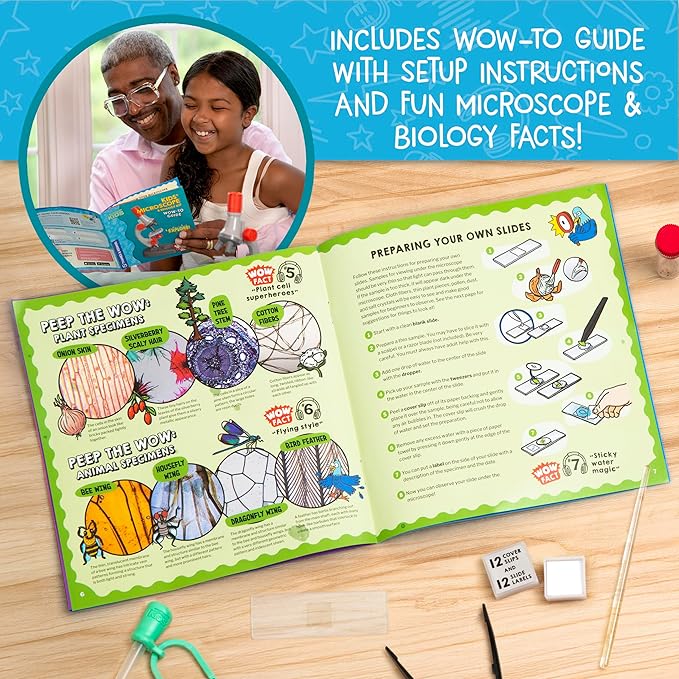 - STEM TOOLS TO KEEP EXPLORING: Includes a blank slide, specimen vial, tweezers, and dropper to prepare your own specimens and explore all the microscopic marvels around you.