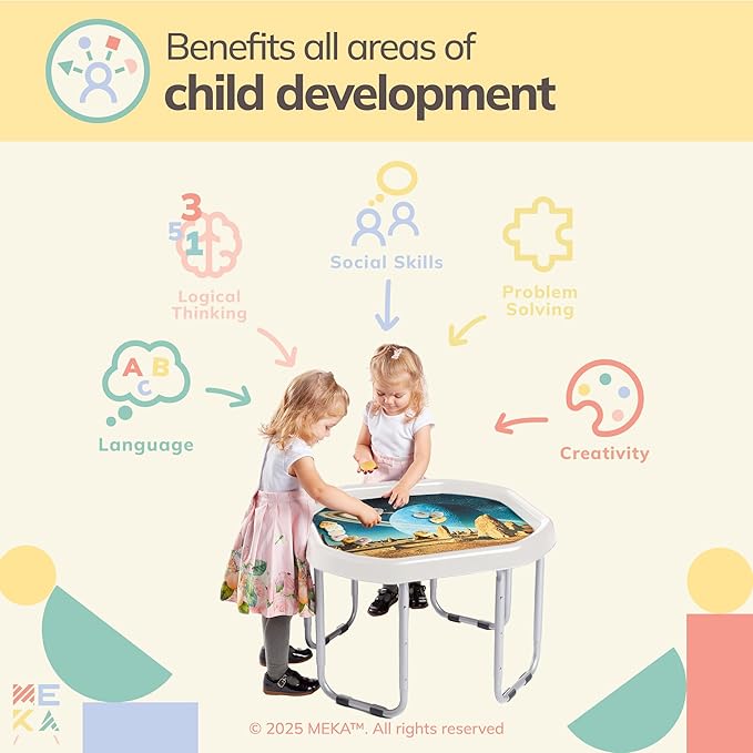 - SENSORY PLAY TRAY SET – Elevate your child's playtime with MEKA Tuff Tray and Stand Set – the ultimate multi-sensory experience! Perfect for toddlers up to age 10, this sensory table offers endless opportunities for exploration and learning.