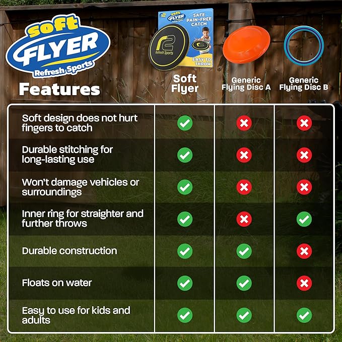 - 𝗦𝗼𝗳𝘁, 𝗦𝗮𝗳𝗲, 𝗮𝗻𝗱 𝗞𝗶𝗱-𝗙𝗿𝗶𝗲𝗻𝗱𝗹𝘆 𝗗𝗲𝘀𝗶𝗴𝗻! – With a lightweight, soft construction, this disc is gentle on little hands, making it perfect for kids to adults. It’s ideal for backyard games, camping trips, and any outdoor adventure.