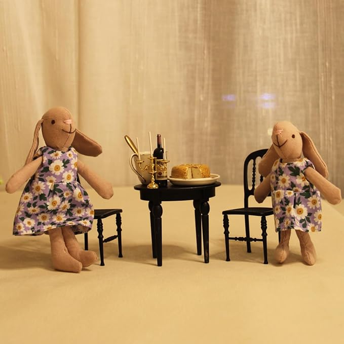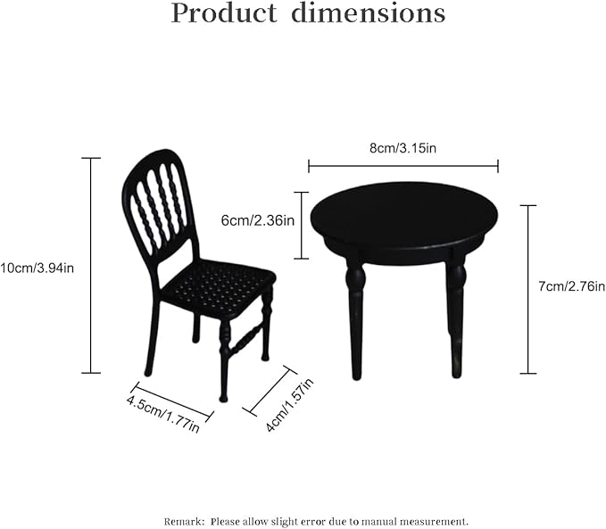 - Versatile Display & Decor Use Great for miniature room decoration, tabletop photography, or creative displays. Bring a unique atmosphere to your miniature setup with this classic black dining set.