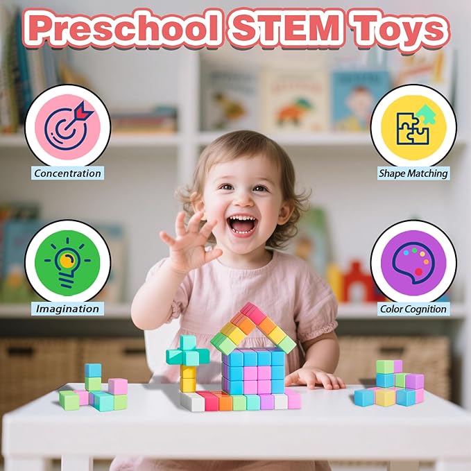 - 【Safety First Toddlers Toys】 Crafted from high-quality, non-toxic ABS, our magnetic cubes ensure both wear resistance and long-term use while prioritizing safety for kids aged 3+. The appropriate size helps prevent choking hazards and makes it easier for toddlers to handle. Smooth edges reduce the risk of cuts or scrapes.The powerful magnets allow for easy snap-together designs, ensuring frustration-free building. It is suitable for various occasions such as being a classroom must-have for preschool and family activities.