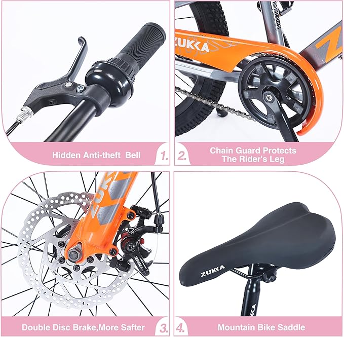 ZUKKA Kids Bike 20/24 Inch Mountain Bike Dual Disc Brake Suspension Fork Single Speed for Ages 7-12 Boys and Girls Youth Bicycle, Multiple Colors