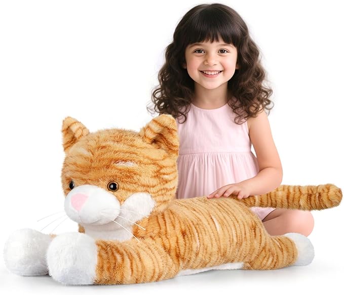 - Premium Quality, Built to Last: Crafted with durable polyester, this big cat plush kawaii stuffed animal withstands daily play. Its soft build features a dual-stuffing system, plush PP cotton for a squishy feel and high-resilience fiber to keep orange cat plush shape through countless hugs. With a gentle, soothing texture, it's great for daily relaxation or sensory comfort. The flexible limbs allow for easy posing, making it perfect for kids' play or as a fun buddy for adults
