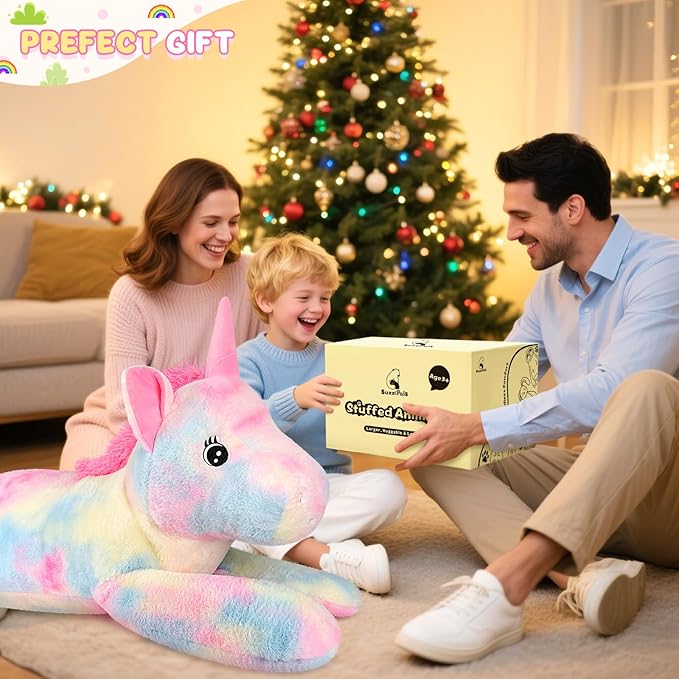 - Perfect Unicorn Gifts for Every Celebration: This big plushies for girls and boys are the perfect gift for birthdays, holidays and special occasions. Arriving in a cute exquisite box, this pink rainbow unicorn decor plush pillow is more than a big stuffed animal, it's a timeless keepsake symbolizing love and warmth giant plushies unicorn