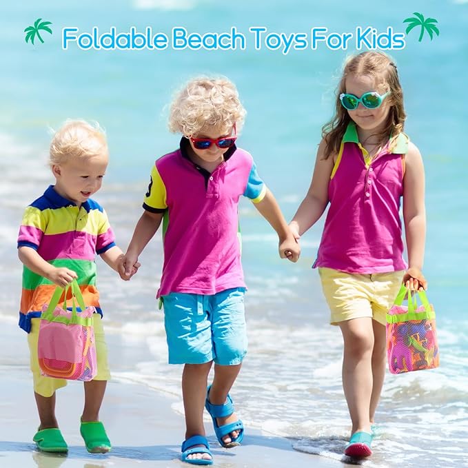 - 【Compact Sand Toys With Mesh Bag】- The reusable mesh bag with zipper make it's easy to carry and store your sandbox toys perfectly.The breathable mesh fabric allows sand to shake out effortlessly.Amazing collapsible sand toys for beach travel.