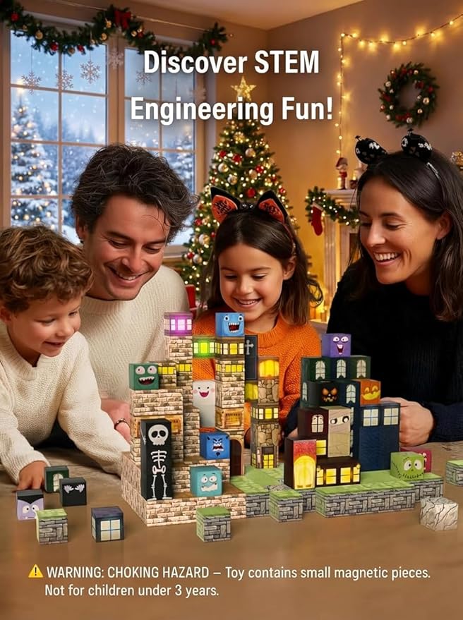- Effortless Building and Versatile Play: The STEM building set includes an instruction manual that showcases model references. Providing kids aged 4-8 with inspiration to construct their own imaginative creations, all 137 pieces—including the 3 free glow blocks—feature uniform sizing for easy connection without struggle, fostering independent play. Whether crafting spooky scenes or inventing new structures, this set offers endless opportunities for hands-on learning and creative exploration, making it a perfect choice for young builders eager to dive into STEM adventures.