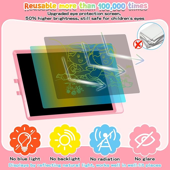 - PERFECT GIFT CHOICE: The multifunctional LCD writing tablet is a great gift for kids, it is reusable, saves a lot of paper and ink, and can be used as an educational toy for preschoolers. Perfect as a gift for back to school, homeschooling, birthdays, Easter, Children's Day, Thanksgiving, Christmas and any occasion
