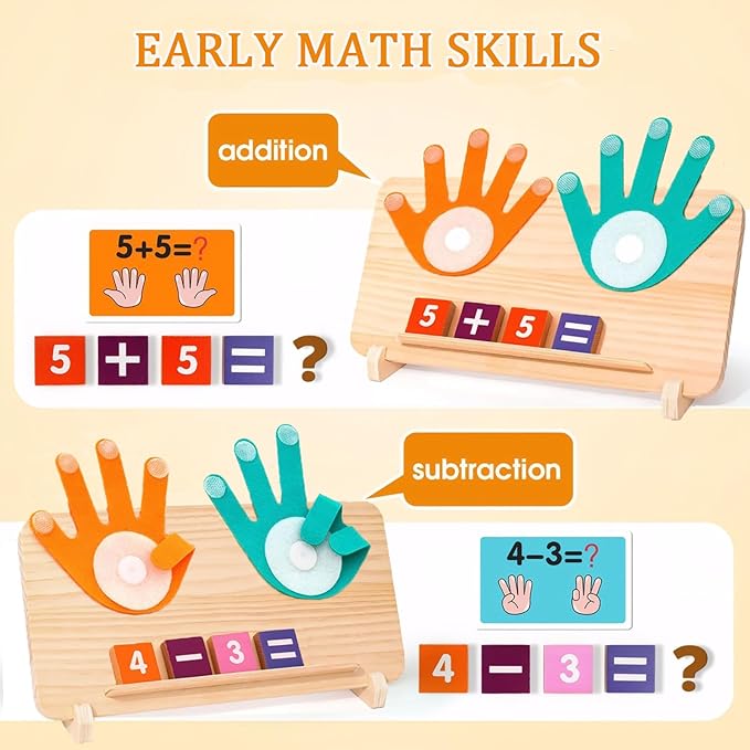 - Double-Sided Interactive Learning: This Montessori math toys features an interactive left-right hand side for practicing addition and subtraction. It helps children build solid number recognition and counting skills while developing their logical thinking and problem-solving abilities. The back side includes a unique number tracing board with wooden handwriting pen, each number comes with directional arrows to help children learn the correct stroke sequence and direction, laying a solid foundation for early writing skills while making learning fun.