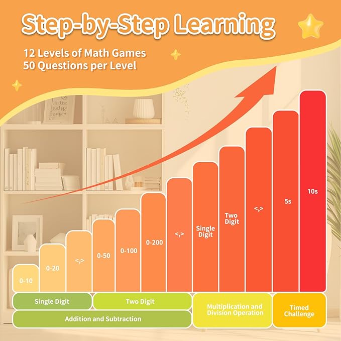 - 【Learn with Rewards & Encouragement】Kids receive instant voice encouragement after answer, helping them understand the questions. To keep them motivated, they earn star rewards for completing tasks, making math practice engaging and rewarding.
