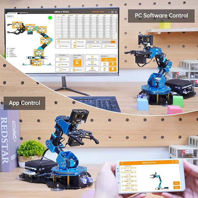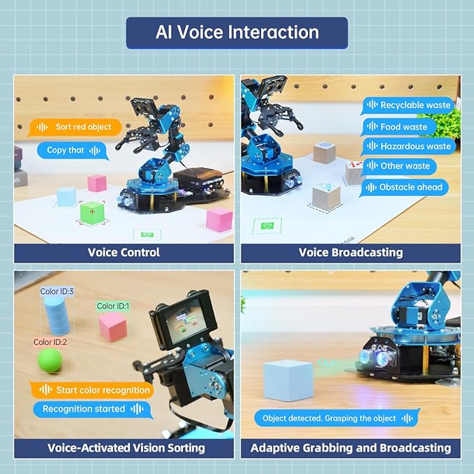 Robotic Arm AI Vision Voice Control for Arduino Scratch Python 6DOF Smart Robot Arm STEM Project Educational Robot & Engineering Kits, Science/Coding/Programming Set, xArmAI Standard Kit