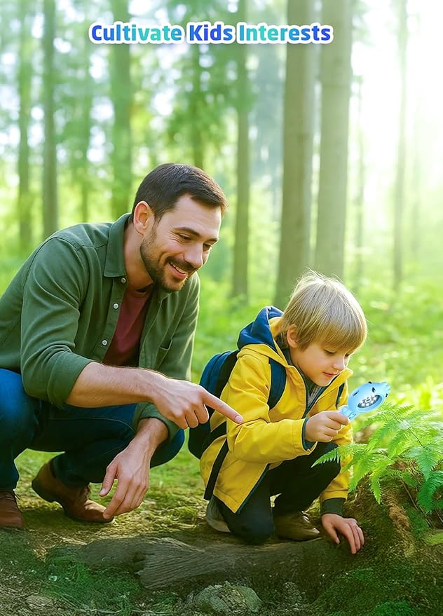 2-in-1 Microscope Camera for Kids, Mini Handheld Microscope Supporting Multiple Viewing Angles, Outdoor Educational Science Adventure Toys, Birthday Gifts for 3-10 Years Old Boys Girls, Blue Dinosaur