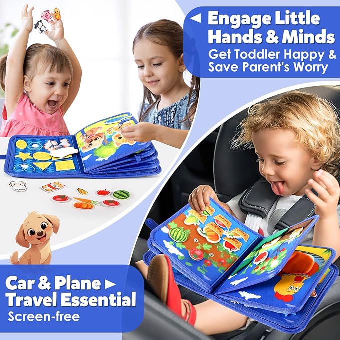 - Portable Travel Toddler Busy Book : The sensory busy book toy is made of safe, high-quality, thickened fabric, soft yet durable. Its light and compact design is convenient for you to carry around, makes the busy book an essential for home, restaurant, car, or plane travel, keeping toddlers quiet in the game or learning.
