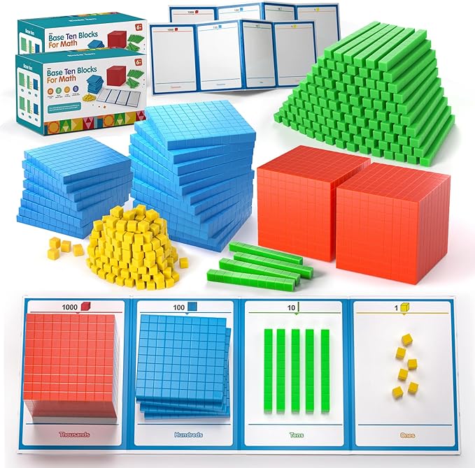- Colorful Base Ten Blocks Kit: Our set is great for hands-on activities. It’s helpful for students to learn 10 concepts, place value, number sense, decimals,Counting Skill, Basic Math Skill,Logical Thinking, operations, measurements, addition, subtraction, model place,model regrouping.Learning and playing with these math manipulatives can help to exercise the flexibility and sensitivity of the fingers, conducive to intellectual development,Hand-Eye coordination