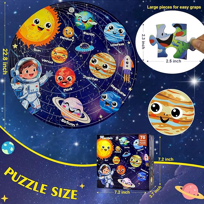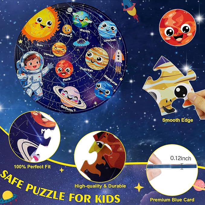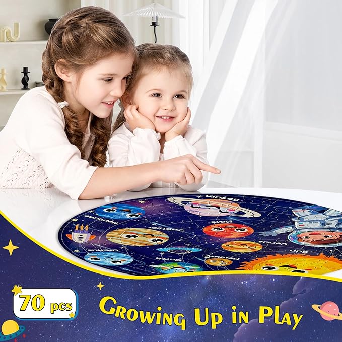- 70-Piece Educational Learning Puzzles: The space planets puzzles for kids ages 6-8 is not just a fun game but also enhances kids' visual perception, hand-eye coordination, and spatial reasoning. While assembling, they develop patience and observation skills, making it an ideal educational activity.