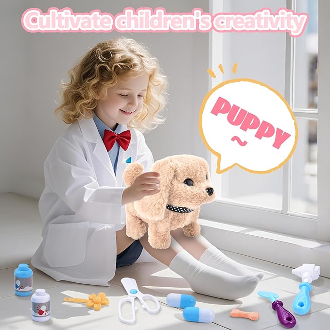 - Interactive Vet Kit: The dog walks, barks, and wags its tail, bringing endless fun and engagement to playtime.