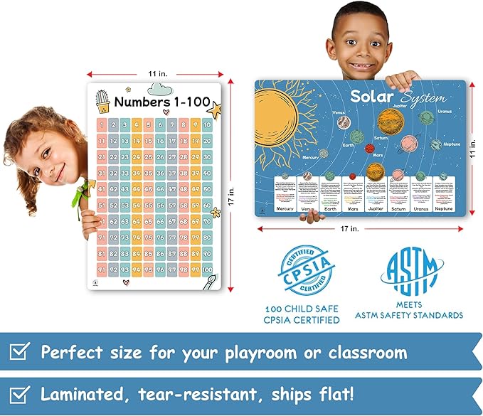 - ✅ PICTURE YOUR GORGEOUS PLAYROOM, CLASSROOM, LEARNING SPACE - Simply Magic boho educational posters come in 50 unique horizontal and vertical designs to fit any classroom, playroom, or homeschool area. These laminated educational posters measures 17 x 11 inches and has a strong laminated surface to last for years. All posters ship flat and are ready to use right away! Perfect as educational posters for walls at home or school.