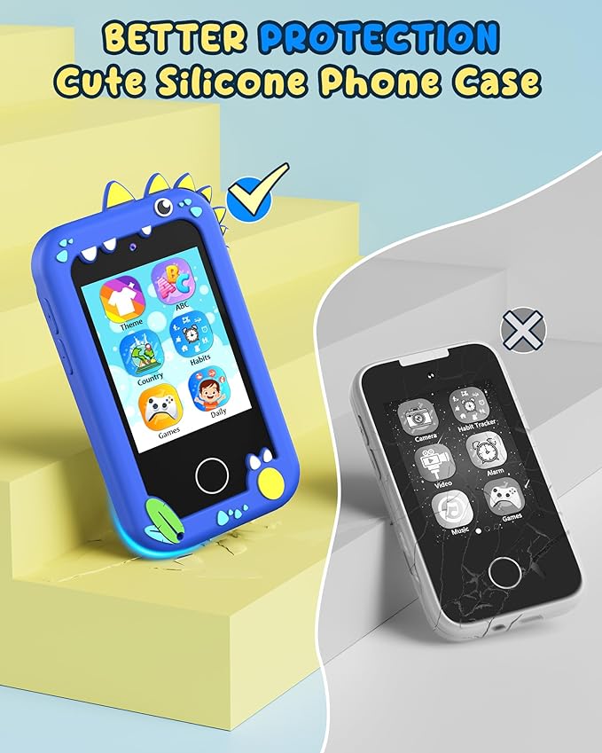 UCIDCI Dinosaur Kids Smart Phone Toys for Boy Dual Camera & Music Player Toddler Selfie Phone Toys Road Trip Toys with Learning Games, Christmas, Birthday Gifts for 3 4 5 6 7 Year Old Blue