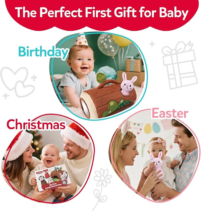 - The Perfect Baby Gift: Designed for babies aged 6–12 months, this jungle plush toy features a cute design and plenty of sensory elements that are sure to captivate and delight any curious baby. It makes an excellent choice for 1 year old boy gifts or one year old girl birthday gifts, combining adorable design with valuable sensory development. Perfect for birthdays, baby showers, or holidays!