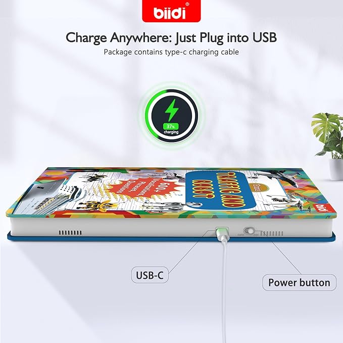 - Durable Design & Type C: the electronic learning toy is made of waterproof and tear-resistant material, carefully bound, with rounded corners that are safer for children. simple and convenient TYPE-C port is more reliable, and up to 6 hours of continuous use at moderate volume!
