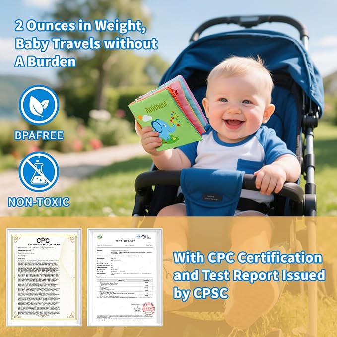 - 【Ultimate Safety】Crafted certified non-toxic fabric and reinforced stitching, this toddler book withstands pulls, bites, and washes. Rounded edges, lightweight design (2oz), and BPA-free teether ensure worry-free play. Passes US CPSIA safety standards—perfect for 6 to 12 months babies mastering grab-and-shake skills.