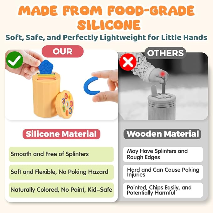 - 【Boosts Sensory Engagement & Fine Motor Skills】Little hands stay active as they sort silicone sensory tiles and color sticks into the matching slots. With various shapes and tactile textures, this toy provides rich sensory input while strengthening grip, hand-eye coordination, and fine motor control through hands-on play