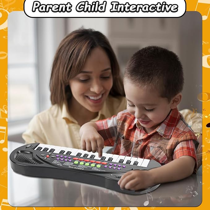 - 【Kids Piano Toy With Microphone】Let the parent-child singing time begin, and let the children start playing! Our electronic piano comes with a detachable microphone. It allows children to play and sing simultaneously, transforming them into little musicians, interacting with their family members through music. This helps cultivate children's playing skills, hand-eye coordination, music theory, and fine motor skills