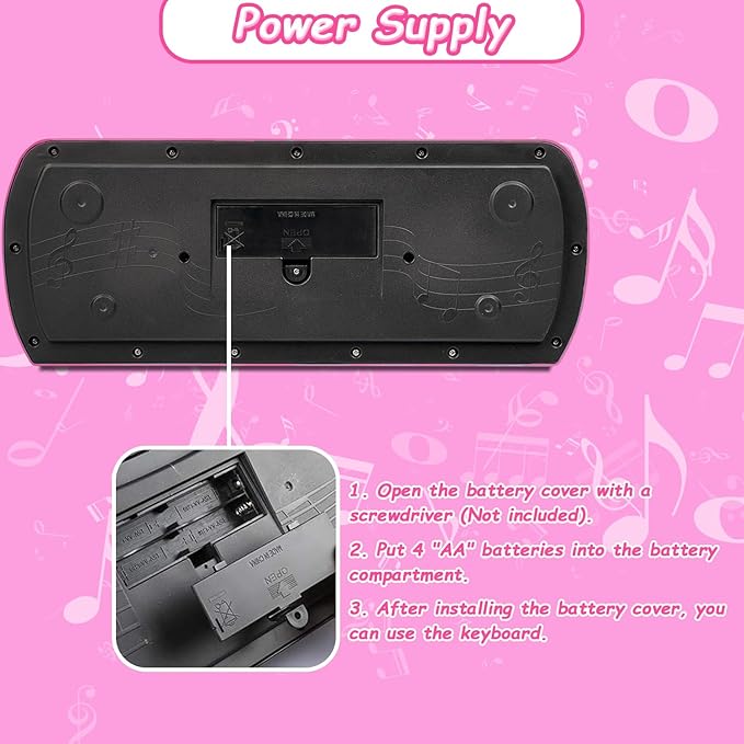 - 【Portable Piano & Play Anywhere】The electronic piano is powered by 4 "1.5V" AA batteries (not included). The dimensions of the piano are: 15.7 * 6.1 * 1.2 inch, and the microphone measures 5.5 inch. The keyboard is specially designed for small hands, allowing you to enjoy the fun of playing and singing anytime, anywhere, whether it's at a park picnic, during a journey for entertainment, indoors or outdoors. With music as your companion, the fun never stops