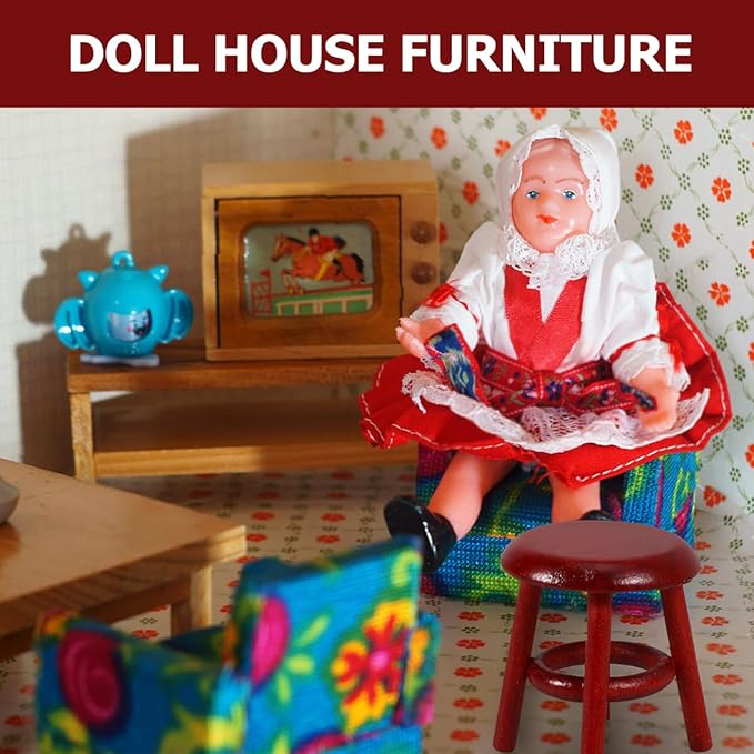 Totority Miniature Wooden Stool for Dollhouse Decor Tiny Furniture for Living Room Bedroom Study Retro Doll House Accessory