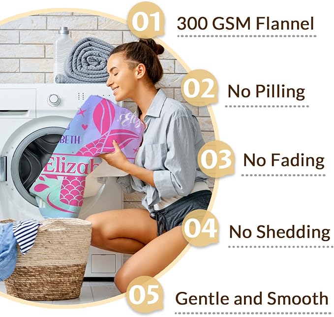 - Personalized Blanket: This mermaid themed blanket is soft. Design your own special soft plush cozy fleece blanket and throw with the name or text you want. Aesthetic mermaids are printed on the custom blanket, one side shows their personality, with many patterns to choose and the other side is pure white