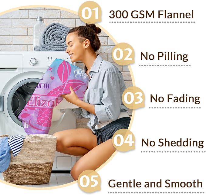- Personalized Blanket: This mermaid themed blanket is soft. Design your own special soft plush cozy fleece blanket and throw with the name or text you want. Aesthetic mermaids are printed on the custom blanket, one side shows their personality, with many patterns to choose and the other side is pure white