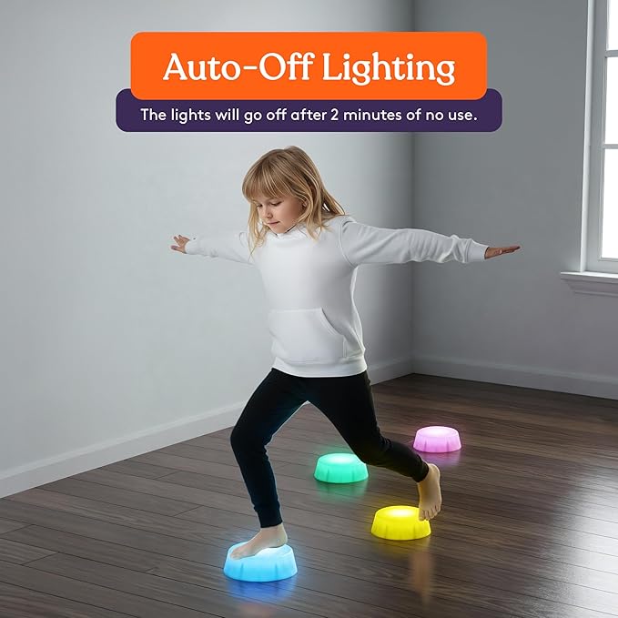 - Enhance Balance & Coordination – These LED stepping stones are designed to improve gross motor skills, strength, and coordination, encouraging active play and movement.
