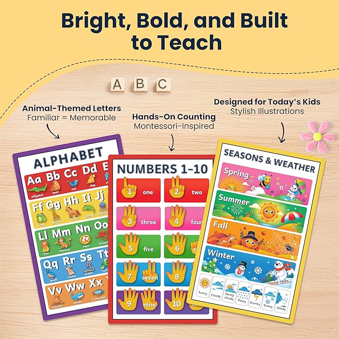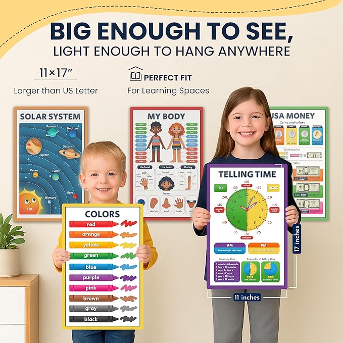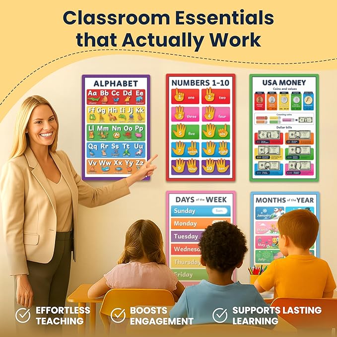 - TEACHER-DESIGNED - Designed by a Pre-K teacher, these 11x17 classroom posters support early learning for ages 2–6. Covering reading, numbers, colors, and speaking skills, they’re ideal for homeschooling, classrooms, or online learning, trusted by teachers and parents.
