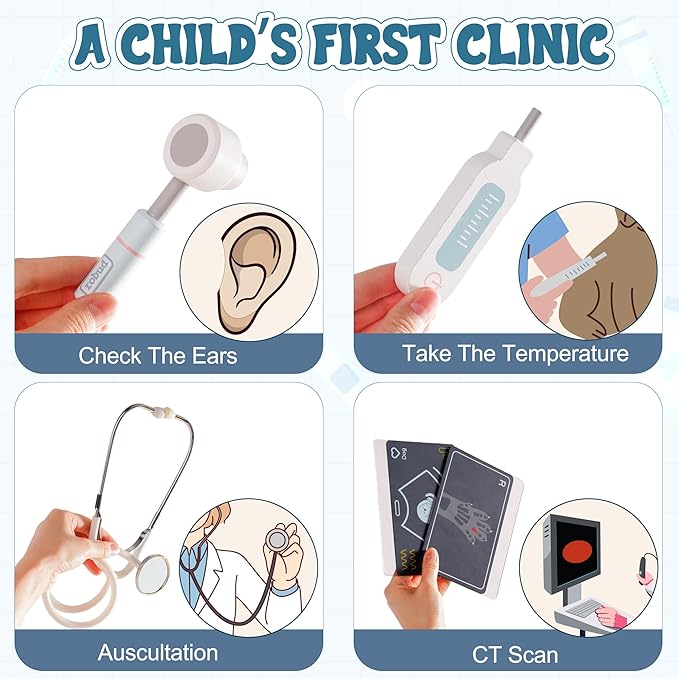 - 【Educational & Fun Play】Through interactive role play, children can practice communication, improve hand-eye coordination, and develop empathy while caring for their “patients.” It helps spark imagination and reduces anxiety about real medical visits.