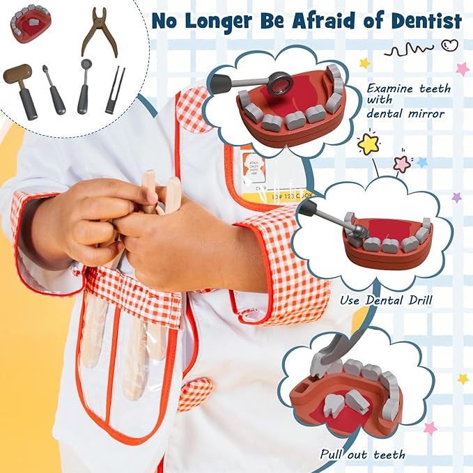 - 【25-piece doctor play set 】- Our doctor pretend toy contains 25 accessories to provide long hours of fun for your child. The accessories include a medical kit, stethoscope, toothbrush, and dentist tools to name a few.