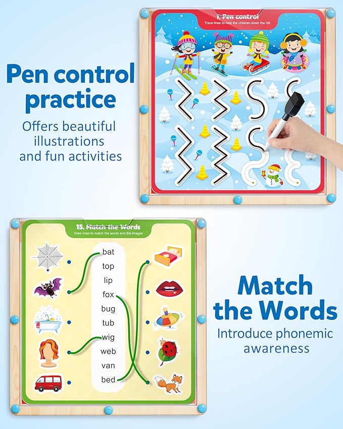 - 30 Math Learning Activities for 3 4 5 Year Old Kids: This preschool alphabet numbers learning activity set contains 15 double sided activity cards, 1 wooden board, 8 markers and 1 manual, offering various methods to practice primary math, alphabet and linguistic skills. This is a practical educational game toy to help kids with basic skills while making math handwriting learning engaging and enjoyable.