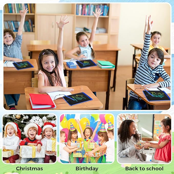 - Delicate Gifts: these lcd writing tablet for kids can be applied as nice gifts for toddlers, suitable as birthday gifts, Christmas gifts, holiday gifts, Easter gifts, back to school gifts, etc., fitting for 3-10 years old boys and girls