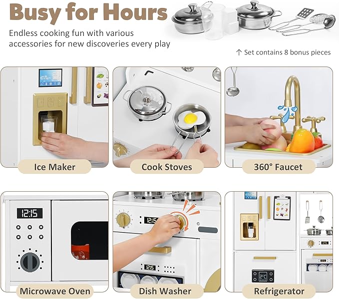 - Durable MDF Construction: Built to last with sturdy MDF materials, this pretend play kitchen offers ample storage space for accessories and easy cleanup, ensuring years of imaginative cooking adventures