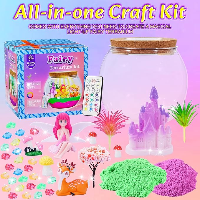 - Unique Gifts for Kids: the Fairy terrarium kit is a perfect gifts for kids age 4-12 ! Ideal for birthdays, party favor, family craft time, bedroom decor or classroom projects, Whether for Christmas, Halloween, or a special occasion, this unique gift will create endless ocean-themed fun