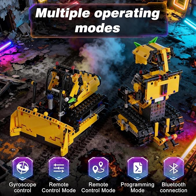 2 in 1 Robot Set, 730 Pieces Remote Control and APP Controlled Robot or Bulldozer, Building Blocks Toys STEM Project for 8 9 10 11 12 13 14 Years Old, Christmas Birthday Gift for Boys