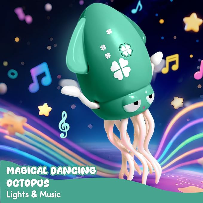 Dancing Octopus Baby Toy - Tummy Time Gift for Babies, Magic Music Dance Light, Infrared Automatic Obstacle Avoidance, Sensor Development Infant Toys Present for Toddler 3-8 Years Old Boy&Girl, Green