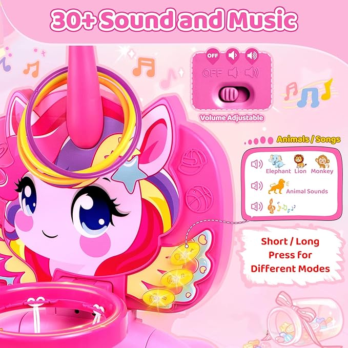 - 【Lights, Sounds & Multi-Sensory Learning】Press buttons to hear animal names, sounds, and music with lights! Score baskets for rewarding phrases, cheers, and fun sounds to celebrate every goal. An ideal baby musical toy for 12-18 Months old that builds vocabulary, sound recognition & cause-effect understanding.