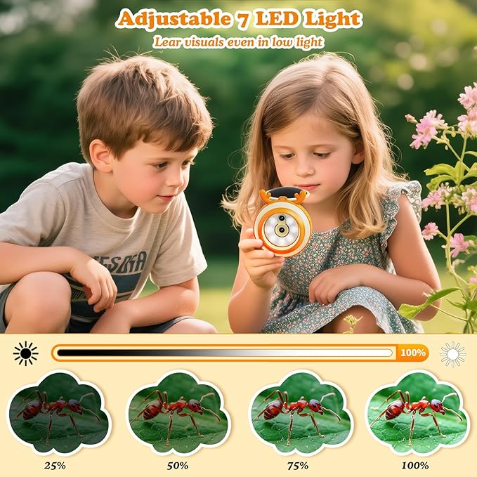 - 4-LEVELS ADJUSTABLE LED LIGHT: Hayve 2.0 inch pocket microscope is built-in 7 LED lights and 4 brightness modes. Provide optimal illumination in any environment, Whether indoors or outdoors, kids can enjoy clear, bright visuals even in low-light conditions, enhancing their observation experience and making every exploration adventure exciting