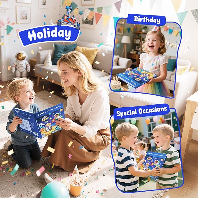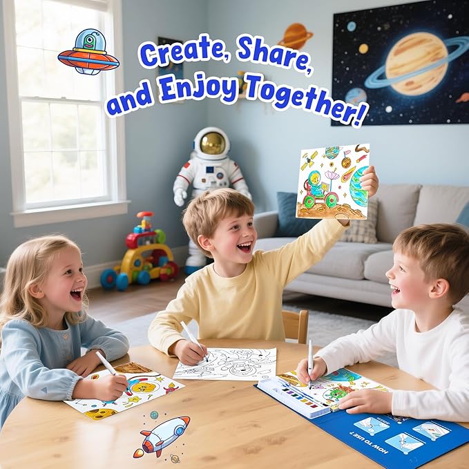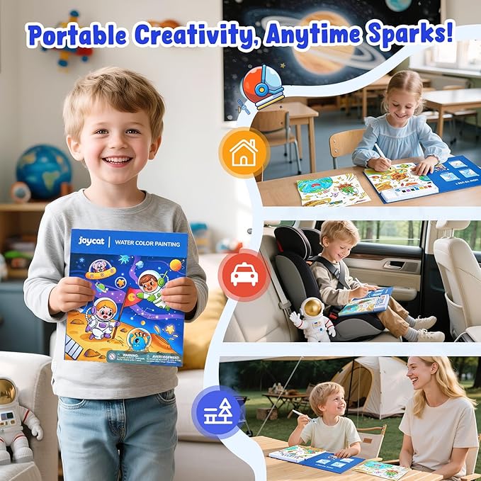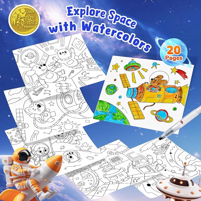 - Engaging & Imaginative: With 20 pages of space theme, JoyCat water coloring books captivate kids for hours. Your kids will explore a vibrant universe of colors and shapes, unleashing their creativity and imagination