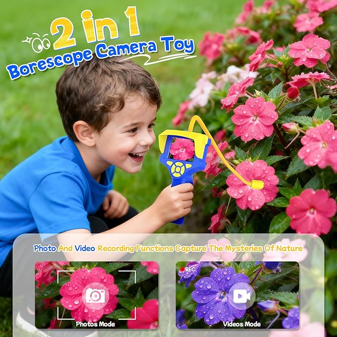 - SUPPORTS PHOTO & VIDEO CAPTURE: The upgraded snake borescope is simply a magical exploration device! It comes with 8G large memory, can take photos and record videos to record your exploration results , and can be transferred to mobile phones and computers after taking photos. The coolest thing is that it is equipped with an 8x zoom camera. Kids can zoom in/out the picture for detailed observation. Those natural small theaters that are usually invisible have become high-definition documentaries in the palm of your hand now