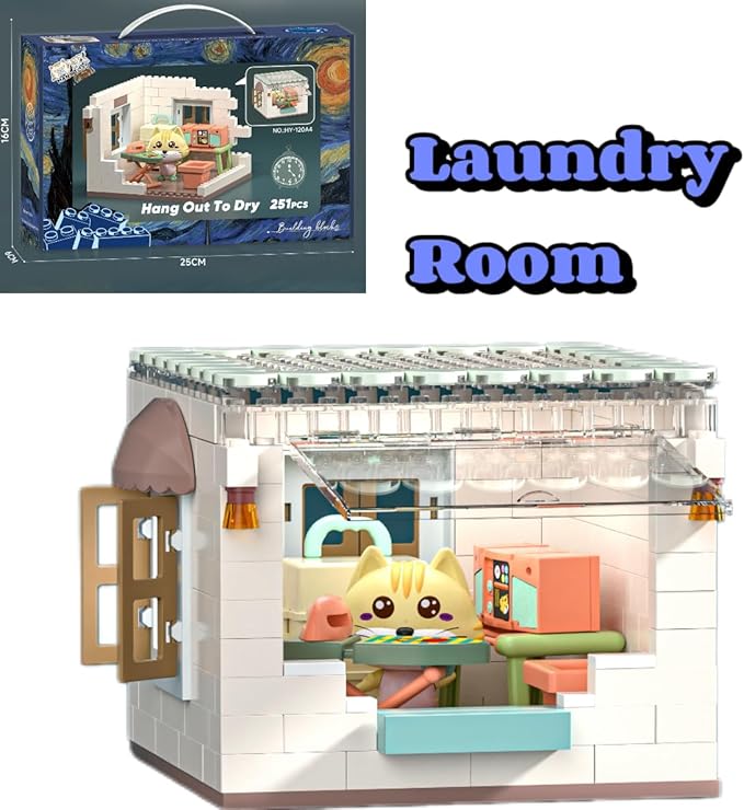 - 【Explore the Whimsical Koko's Cat Town: Laundry Room】Step into the charming world of Koko with our Cat Town Toy Building Blocks Set! This miniature house kit allows kids to build a delightful Laundry Room scene, complete with cute mini furniture and bricks. It's the perfect start to creating your entire Cat Town collection, offering endless hours of imaginative play in a tiny, adorable world.