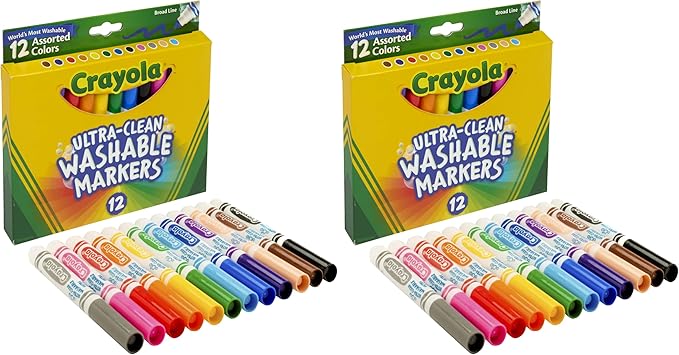 Crayola Broad Line Markers (12 Count), Washable Markers for Kids, Assorted Colors, Arts & Crafts Supplies, For Coloring Books & Art Projects, Ages 3+ (Pack of 2)