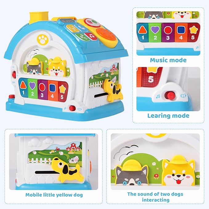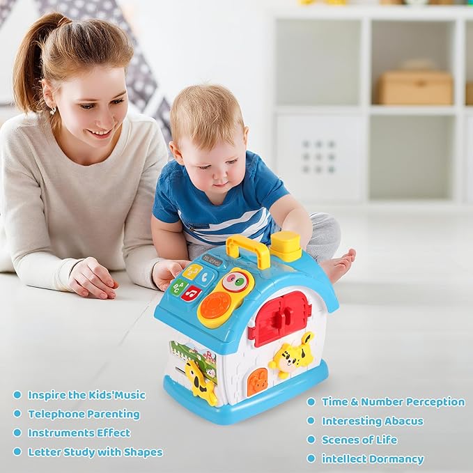 1 2 Year Old Boys Montessori Musical Learning House Toys,First Birthday Gifts for Baby Boys,Blue Bilingual Educational Toy for Toddlers Age 1-3