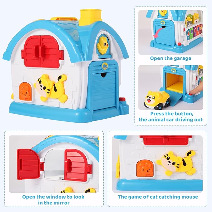 - Interactive Animal Play: Includes adorable animal figures such as a dog, cat, and mouse that can be manipulated and make cute sounds. Opening the garage door reveals a moving animal car, adding excitement and encouraging imaginative play