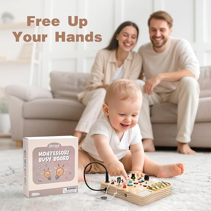 - 【Early Educational Toy & Best Gift】Joyreal busy board with led light is beautiful in appearance and bright in color. The busy board for 1 year old is a fun and educational early learning toy, suitable as a birthday, holiday, or daily reward gift. Whether you give it to your own child or the baby of your friends and family, The busy board for toddlers 2-4 can convey love and care and bring infinite surprises!